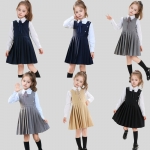 여자 긴팔셔츠 플리츠 원피스 교복세트(셔츠 타이 원