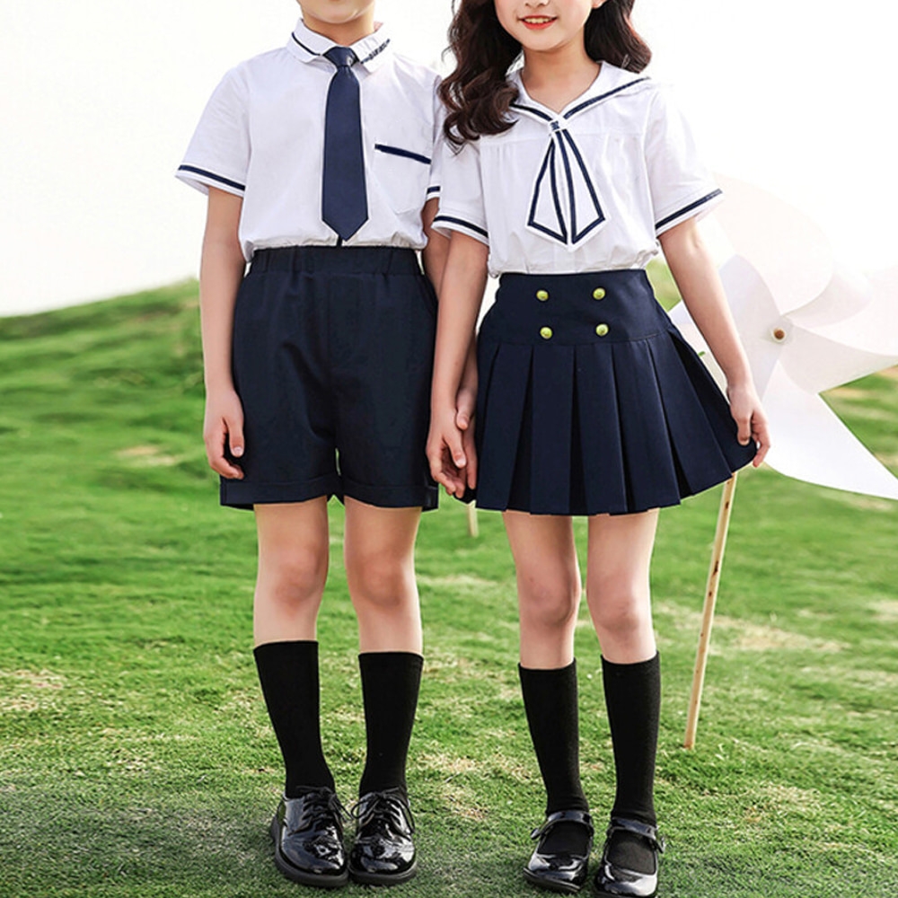 네이비 라인포인트 반팔 교복세트 유치원 스쿨룩 합창
