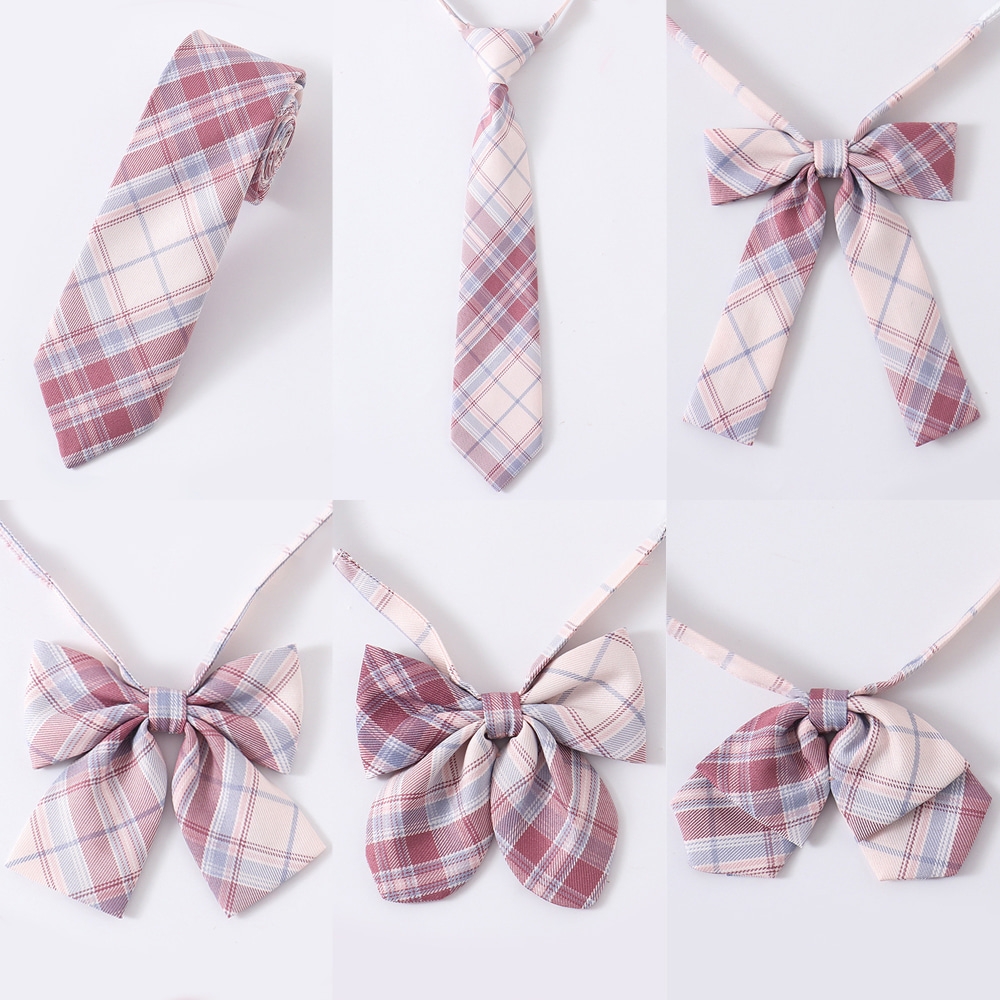 아이보리핑크 사선체크 여자 넥타이 6종 교복 학생복