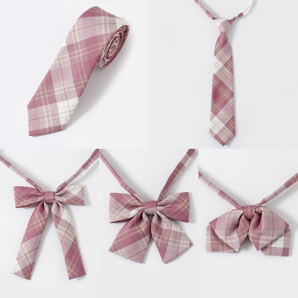 핑크 사선체크 여자 넥타이 5종 교복 학생복