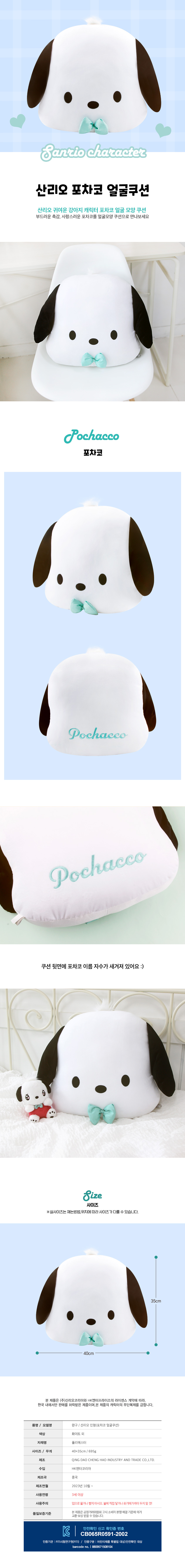 품명 및 모델명 산리오 포차코 얼굴쿠션