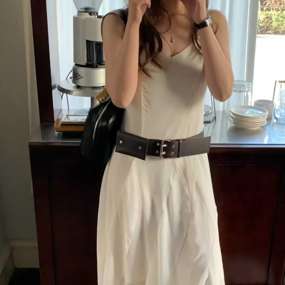 여성 봄 여름 언발 캉캉 끈나시 롱 원피스