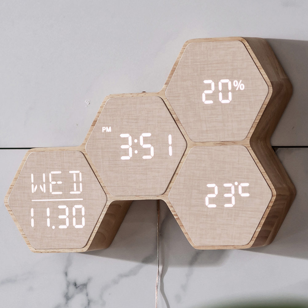 베이지브라운 허니콤 우드 인테리어 LED 탁상시계