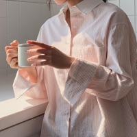 여성 탄탄 오버핏 스트라이프 카라 셔츠