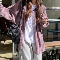 여성 오버핏 실버 펜던트 포켓 체크 셔츠