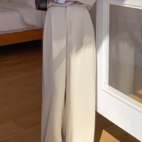 여성 봄 핀턱 세미 와이드 밴딩 슬랙스