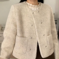 여성 봄 여름 데일리 울 트위드 크롭 자켓