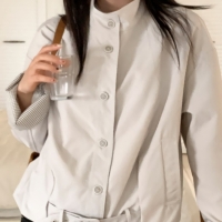 여성 하이넥 소매 배색 벨트 야상 자켓