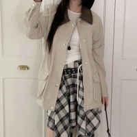 여성 배색 카라 오버핏 포켓 야상 워크 자켓