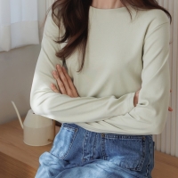 여성 리본 소매 워머 보트넥 골지 티셔츠