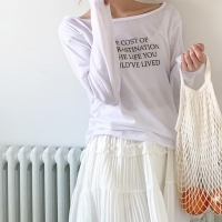 여성 봄 레터링 슬림 보트넥 긴팔티