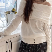 여성 버튼 포인트 루즈핏 골지 오프숄더 맨투맨