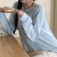 여성 봄 여름 루즈핏 라운드 컬러 맨투맨