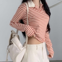 여성 가을 겨울 스트라이프 카라 티셔츠