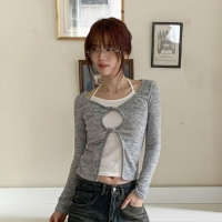 여성 겨울 레이어드 리본 스트랩 티셔츠