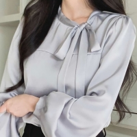 여성 겨울 찰랑 브이넥 타이 블라우스