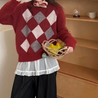 여성 겨울 데일리 아가일 패턴 라운드 니트