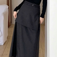 여성 모직 이중 레이어드 A라인 벨트 롱 스커트
