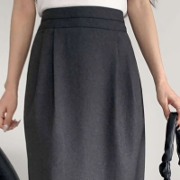 여성 밴딩 스트랩 H라인 모직 롱스커트
