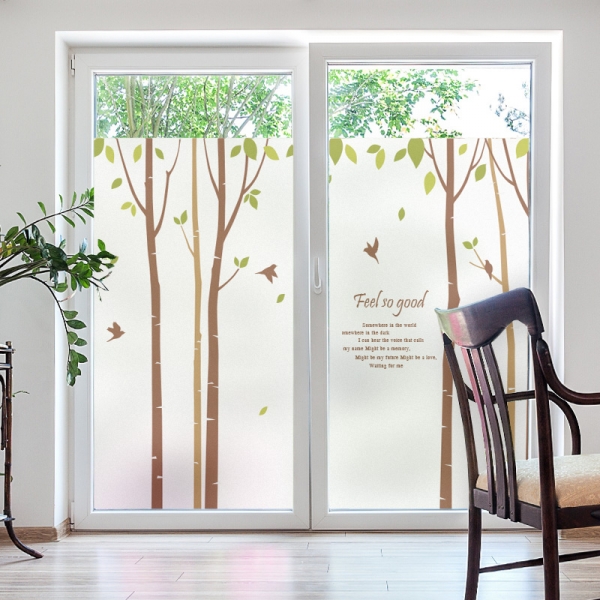 창문 유리창시트지 칼라 안개시트지 새들의자작나무01