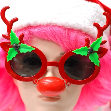 루돌프의 뿔 이 안경알 양옆으로 올려 있습니다.