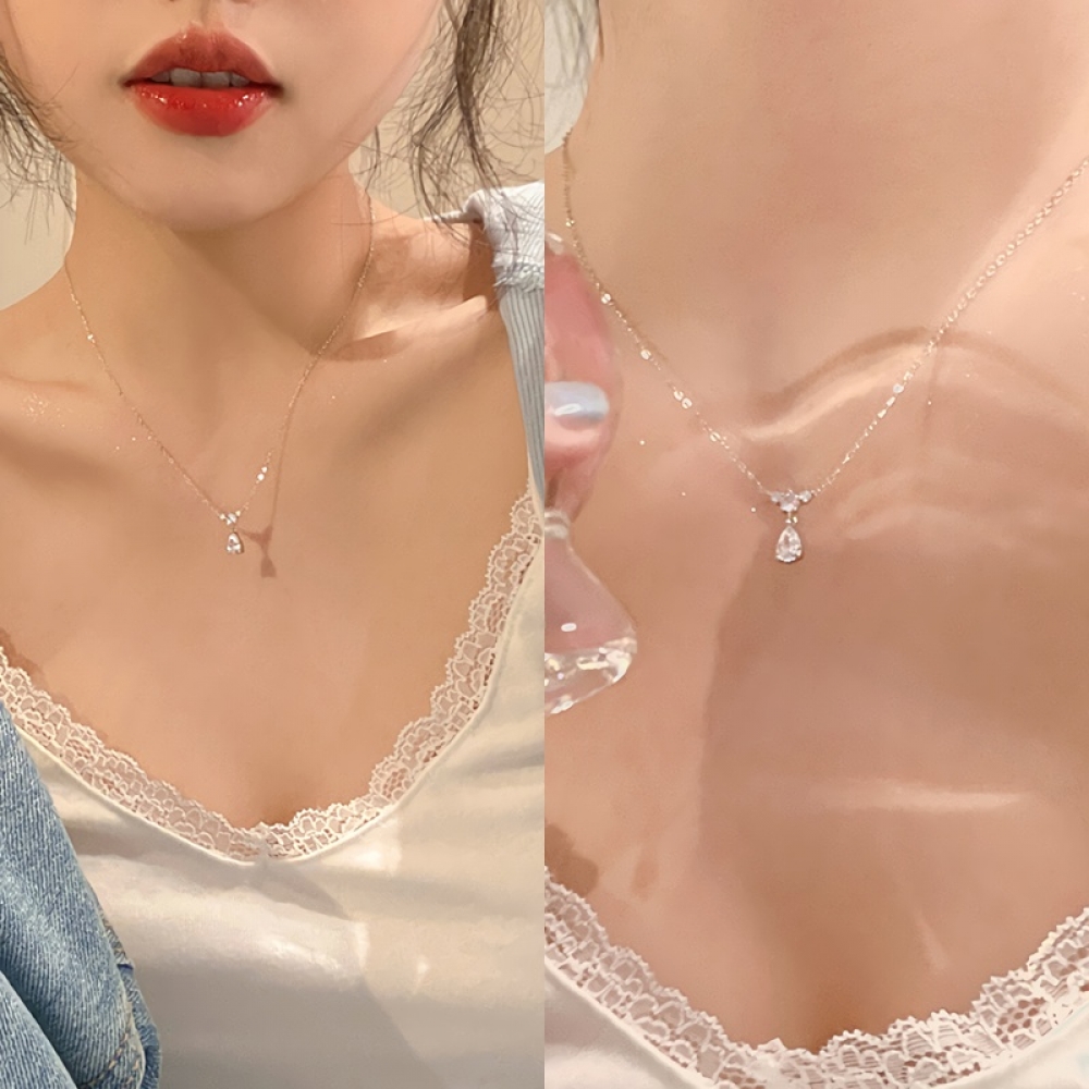 여성 실버 s925 물방울 윙 드롭 목걸이