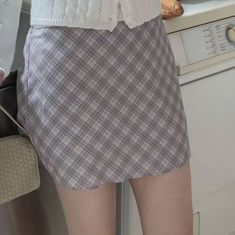 여성 페미닌 A라인 뒷밴딩 체크 미니스커트