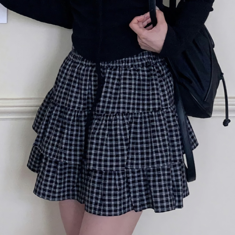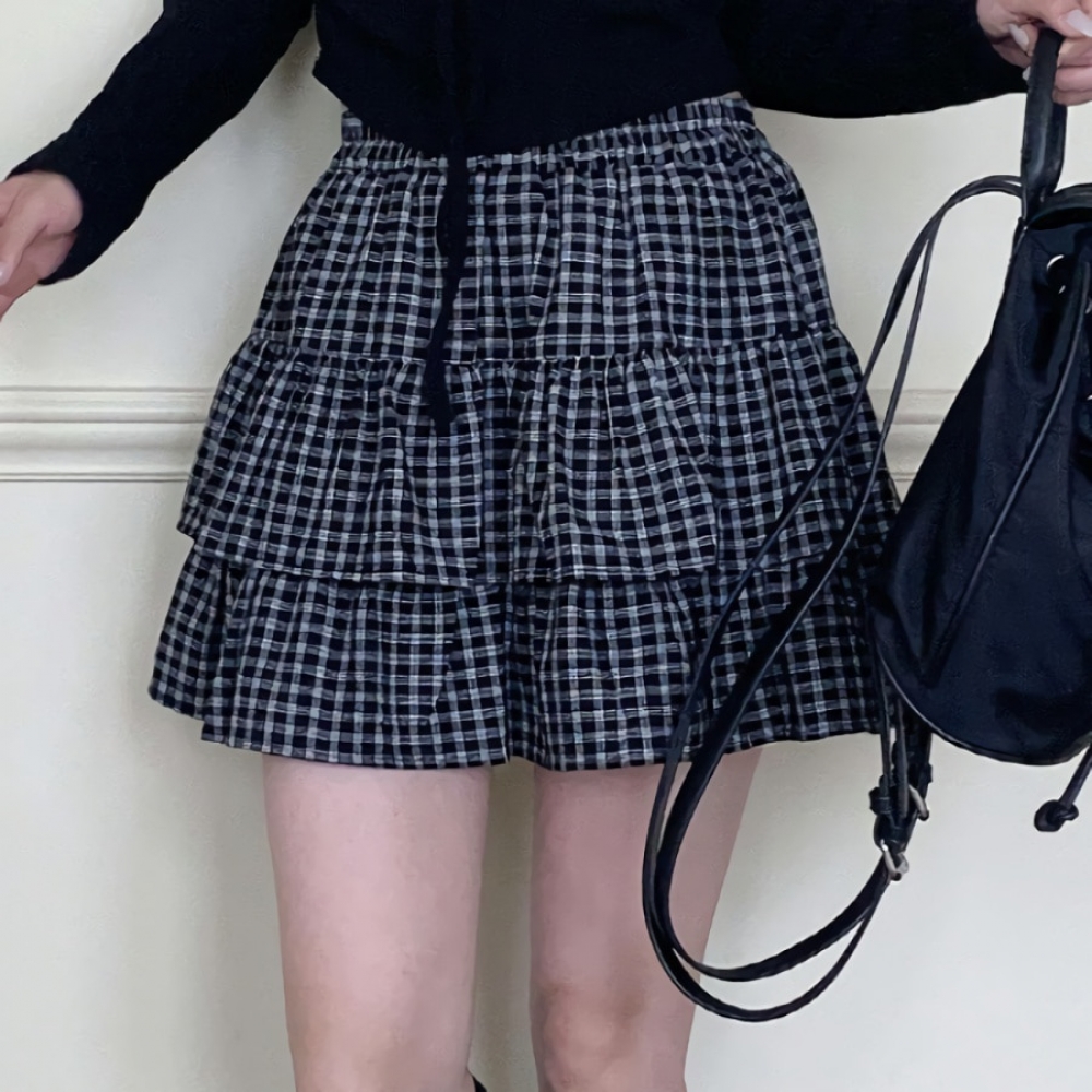 여성 겨울 캉캉 플레어 체크 미니 스커트