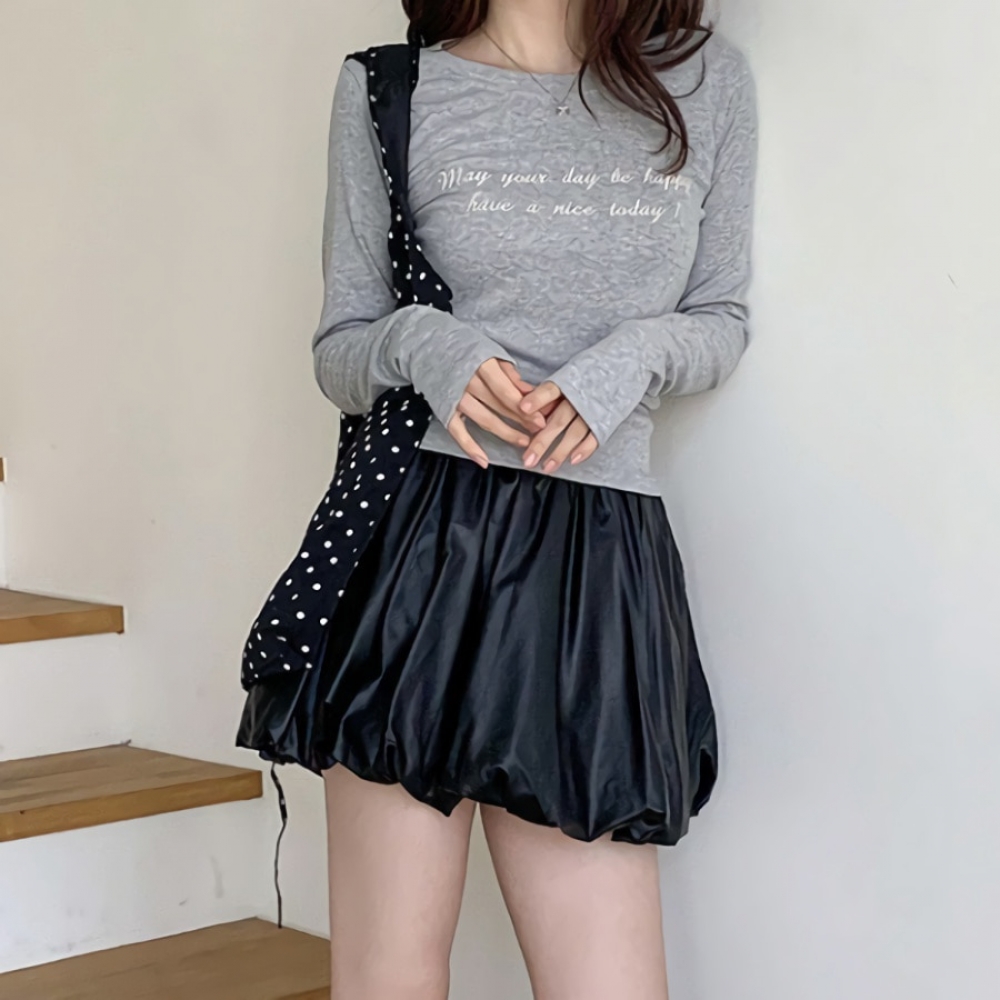 여성 포켓 레더 밴딩 벌룬 미니 스커트
