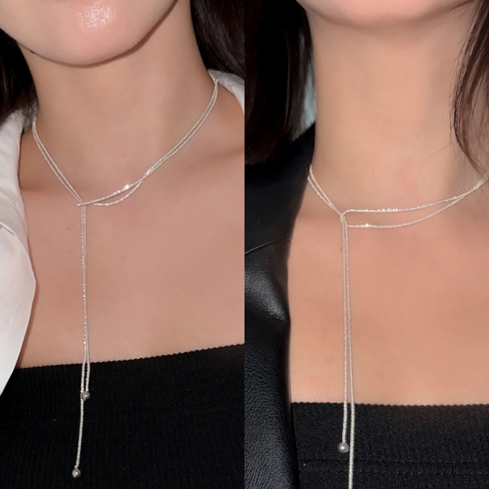 여성 s925 실버 스파클링 볼 롱 니트 목걸이