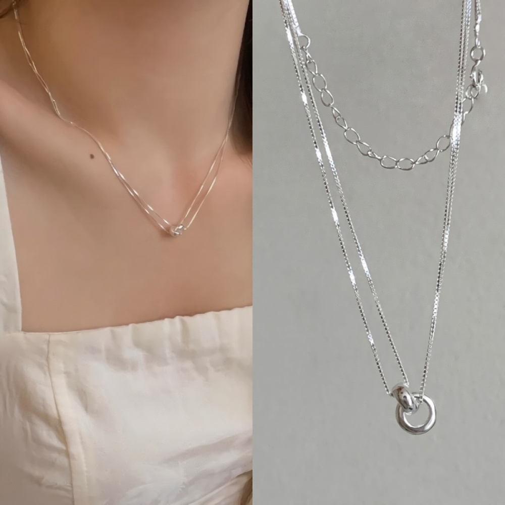 여성 s925 실버 심플 이중 링 레이어드 목걸이