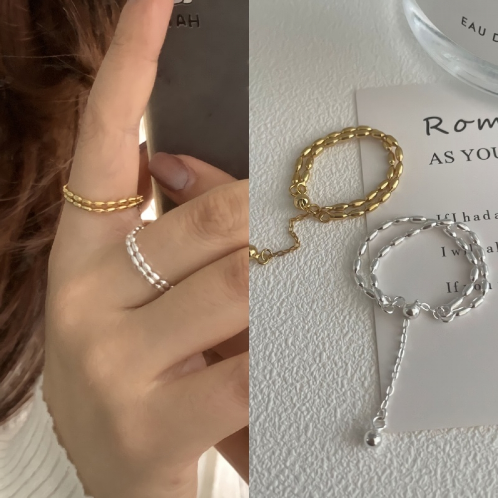 여성 s925 실버 골드 레이어드 드롭 체인 반지