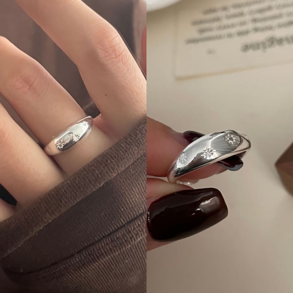 여성 s925 실버 볼드 볼륨 펀칭 오픈 링 반지