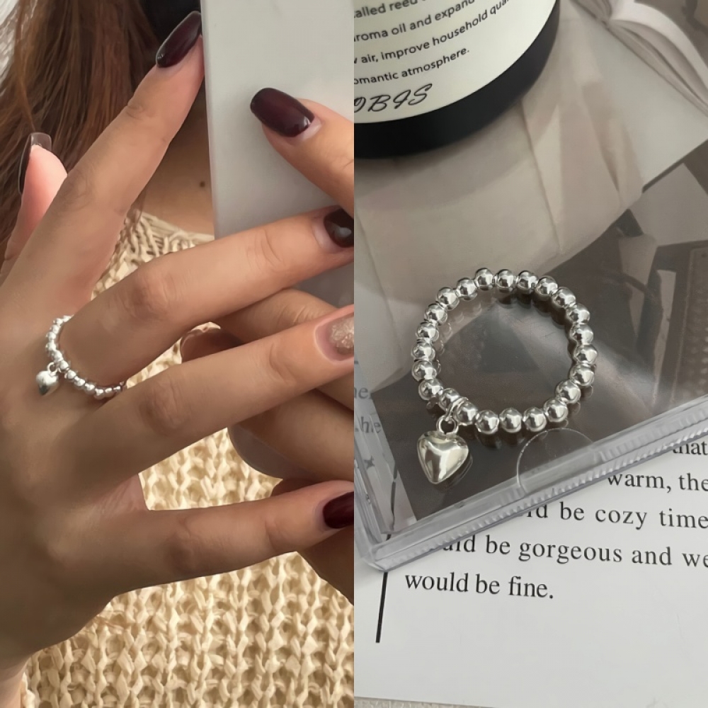 여성 s925 실버 하트 드롭 볼 비즈 링 반지
