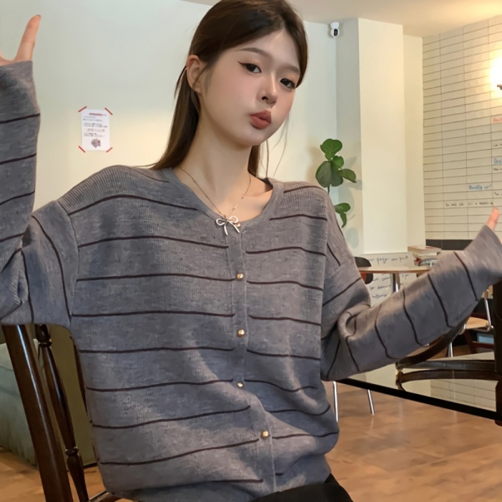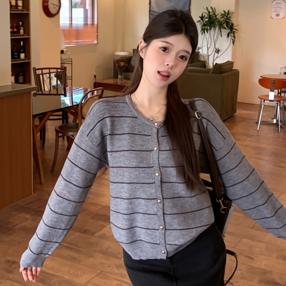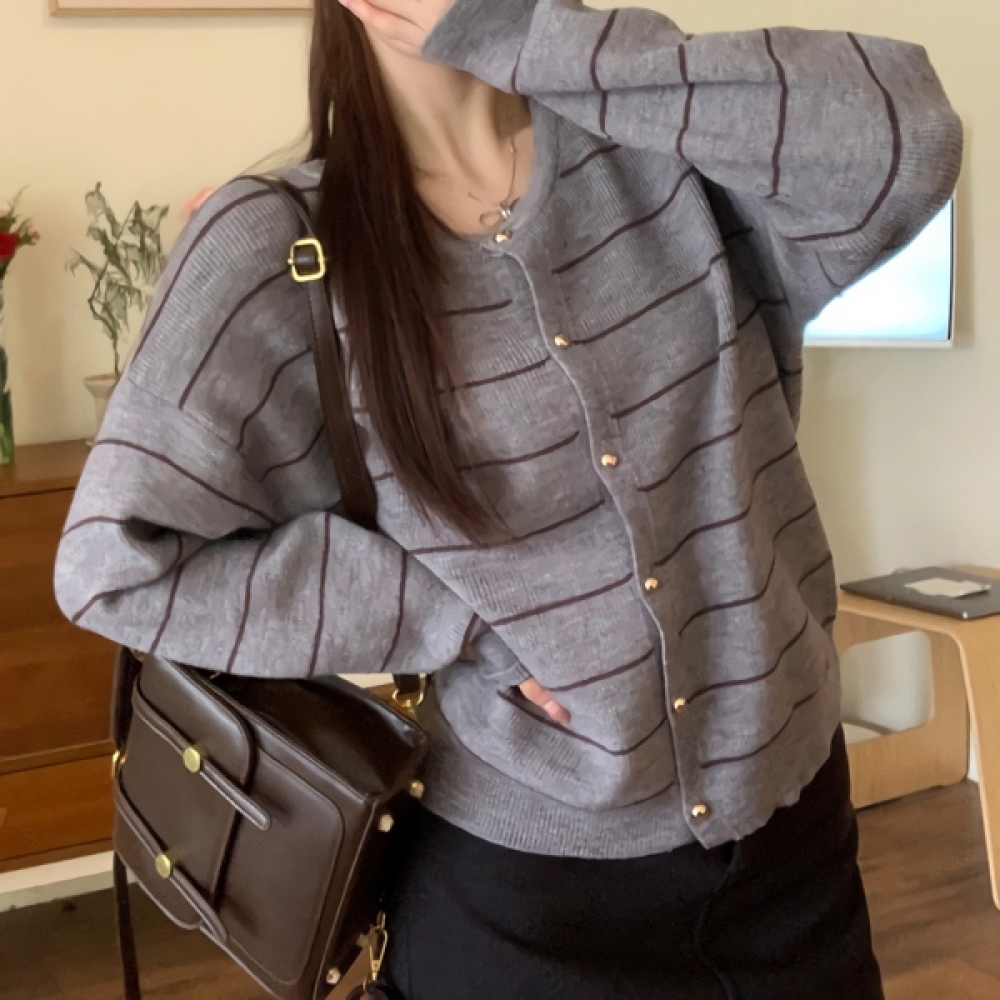 여성 겨울 데일리 라운드 스트라이프 가디건