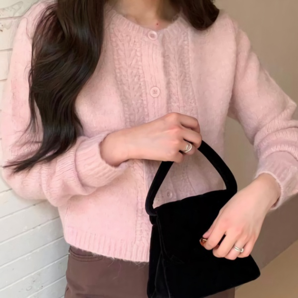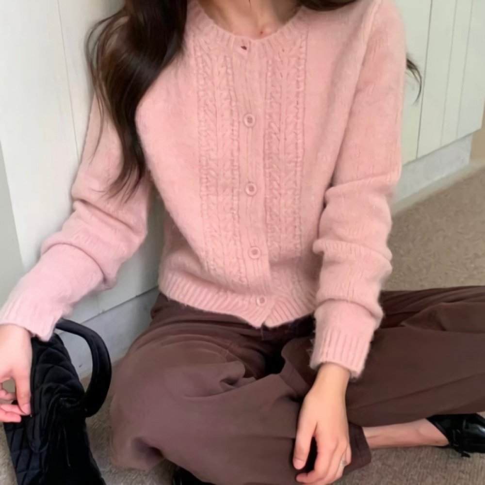 여성 겨울 데일리 꽈배기 라운드넥 울 가디건