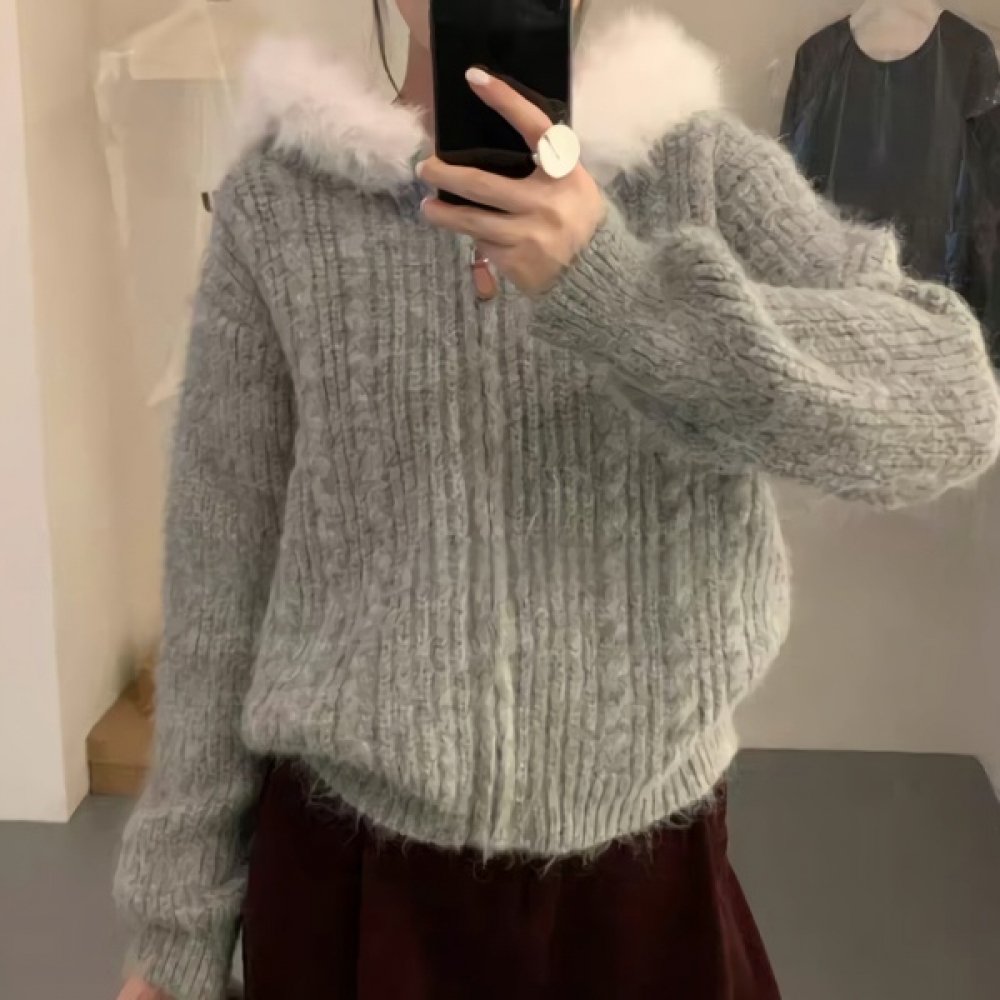 여성 겨울 데일리 퍼후드 집업 가디건