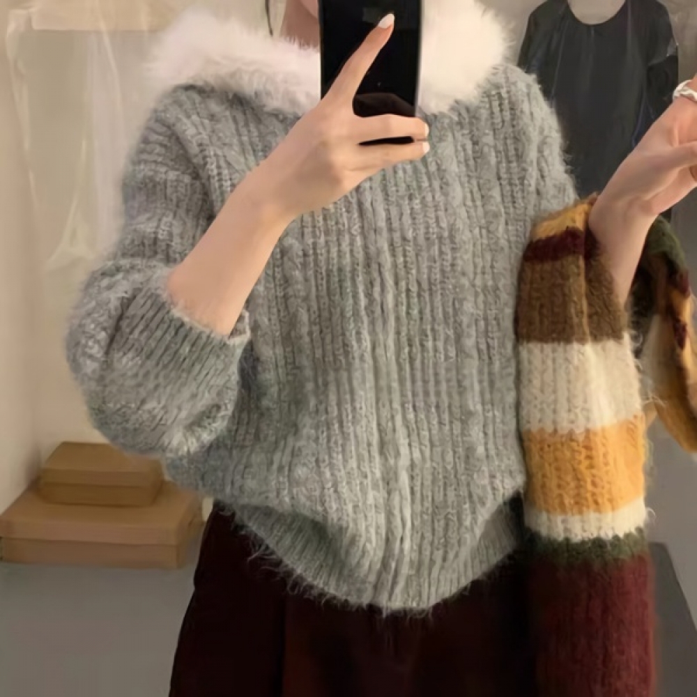 여성 베이직 헤어넥 삼각 니트 머플러