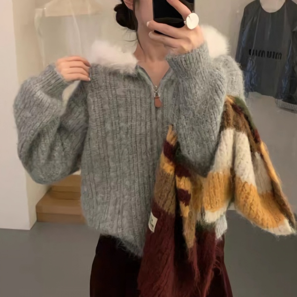여성 겨울 데일리 포켓 집업 니트 가디건