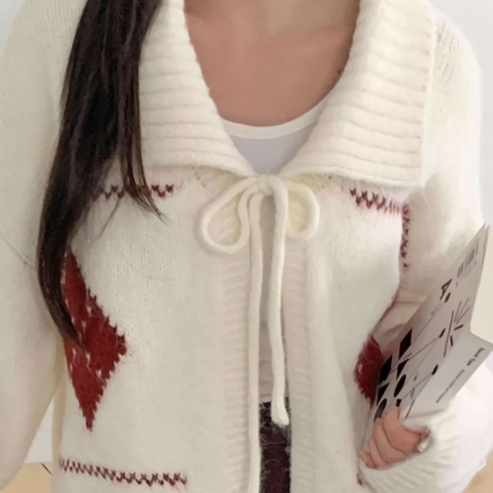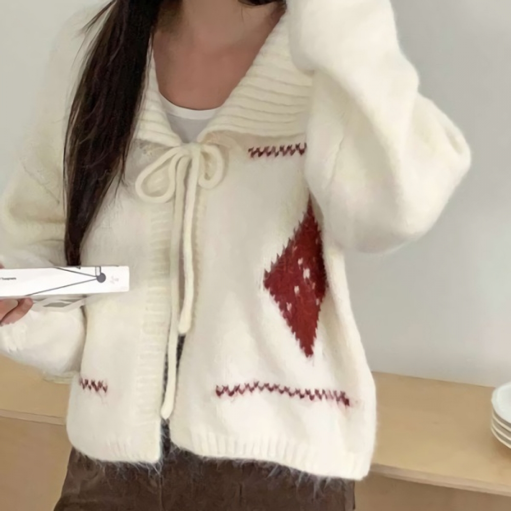 여성 빅카라 아가일 오버핏 니트 가디건