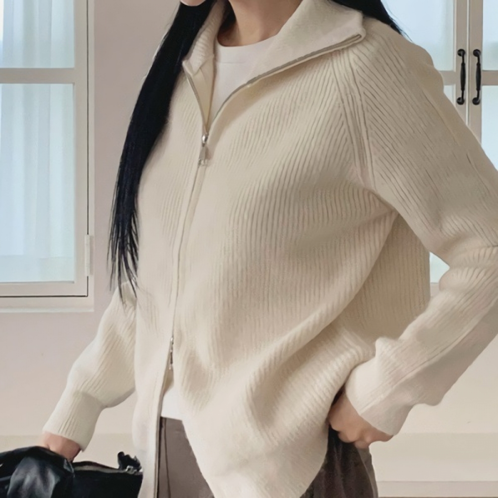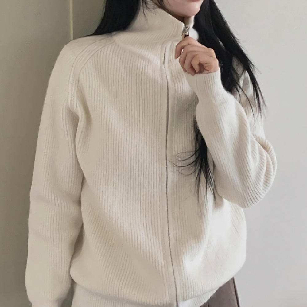 여성 하이넥 오버핏 니트 집업 가디건