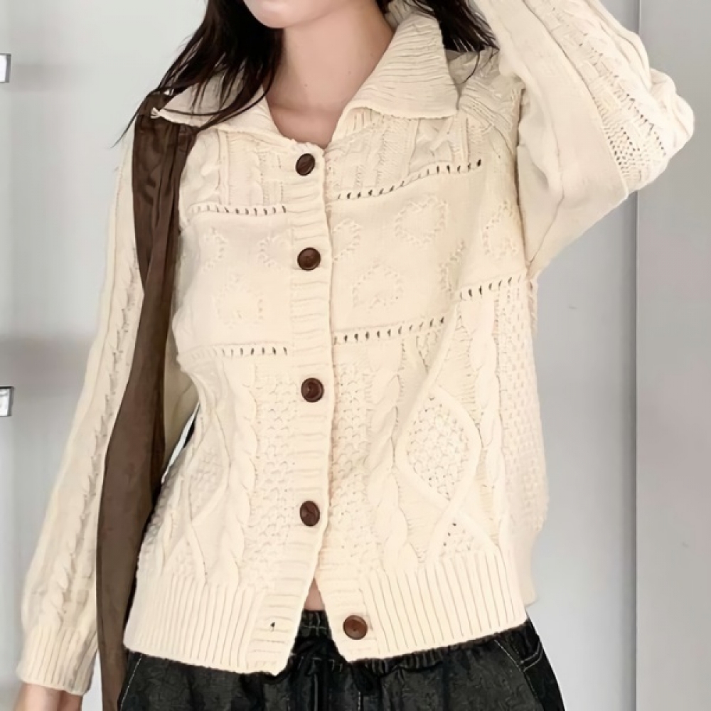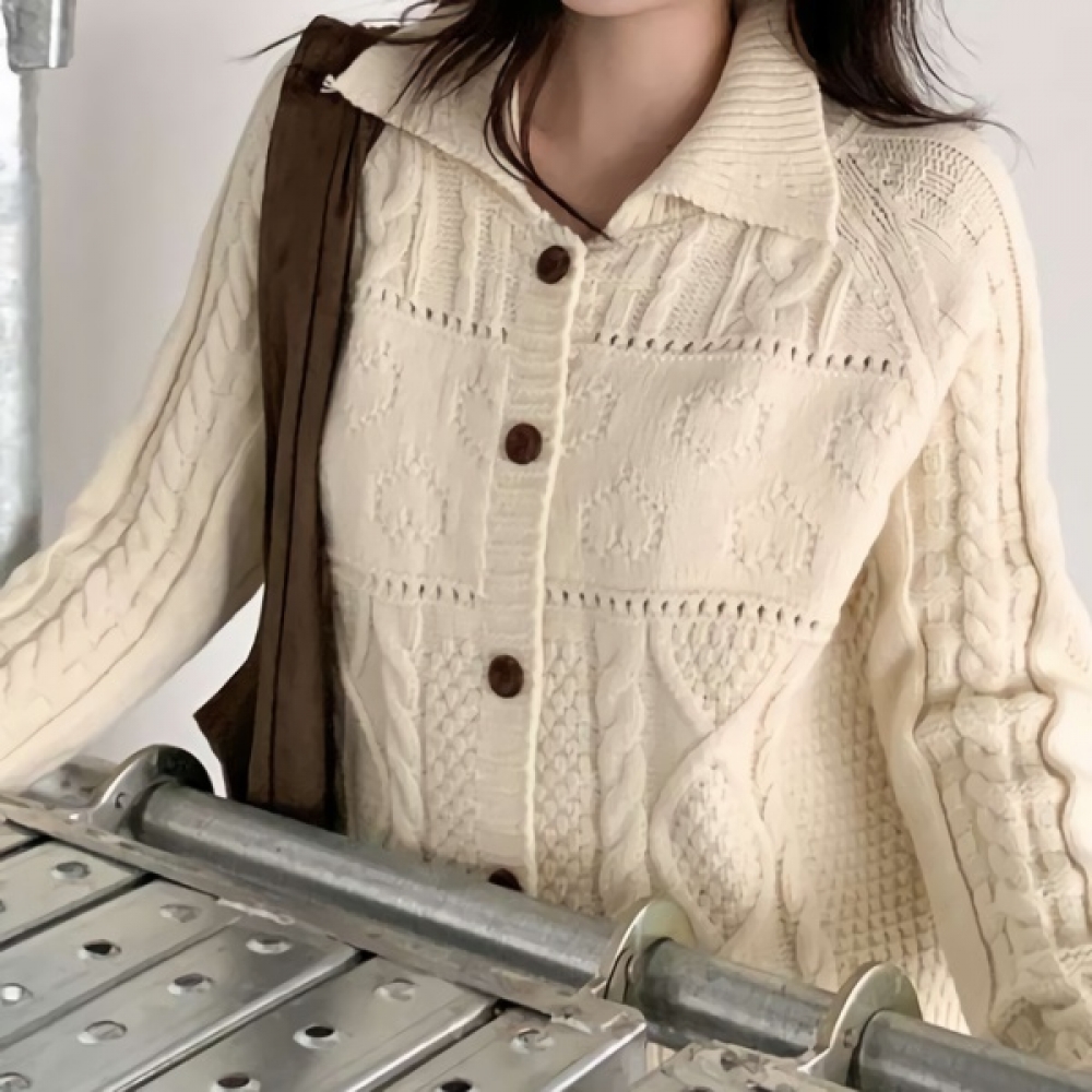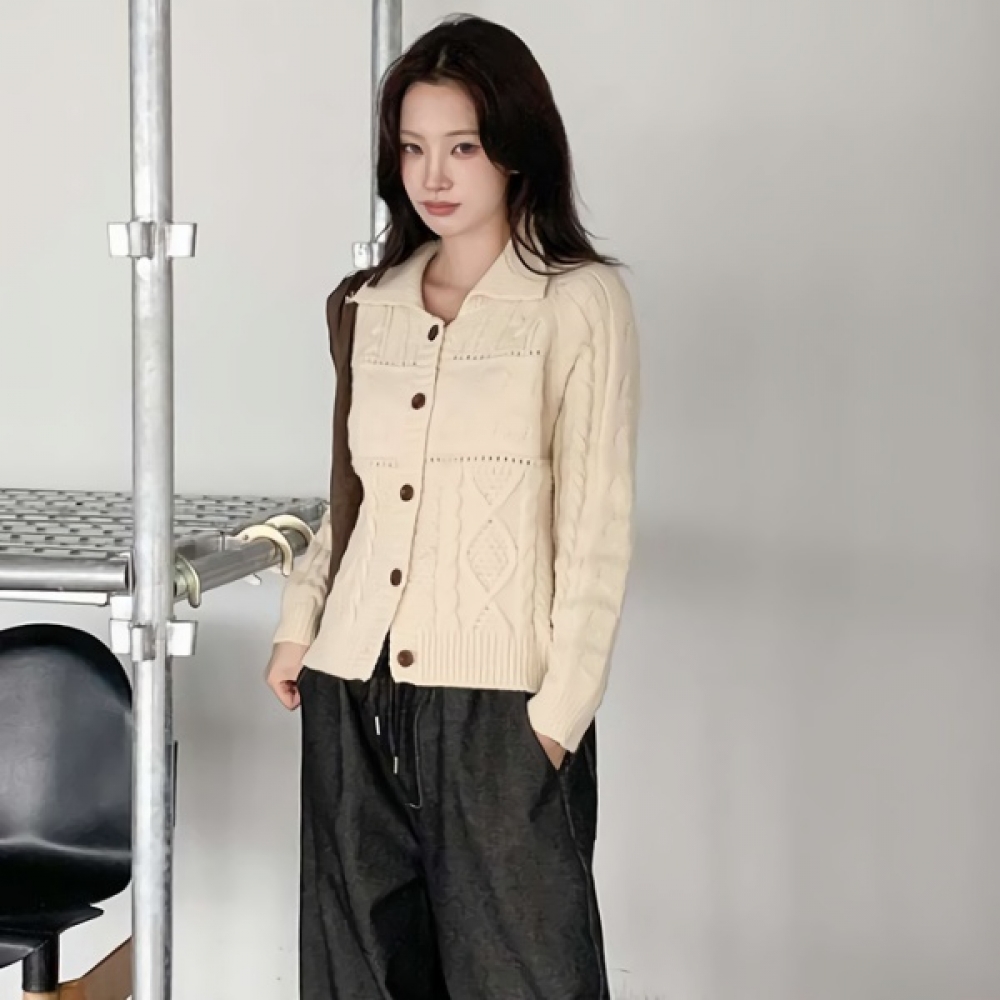 여성 겨울 꽈배기 카라넥 오픈 가디건