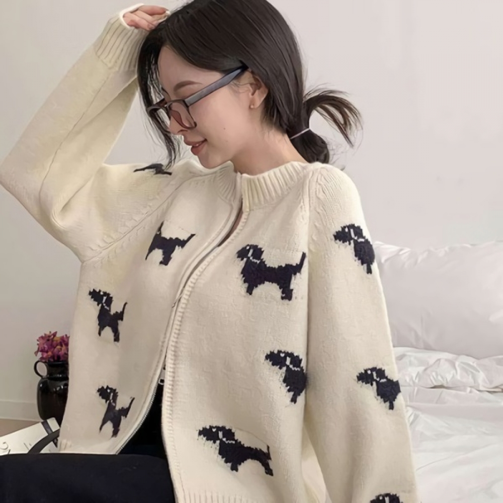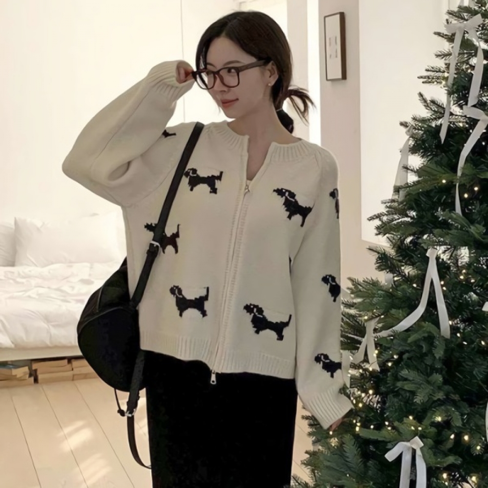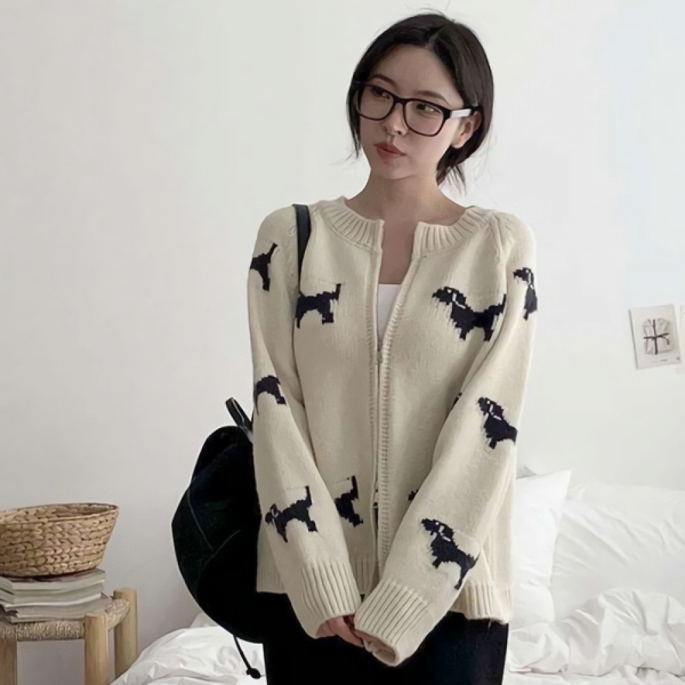 여성 겨울 데일리 포켓 집업 니트 가디건