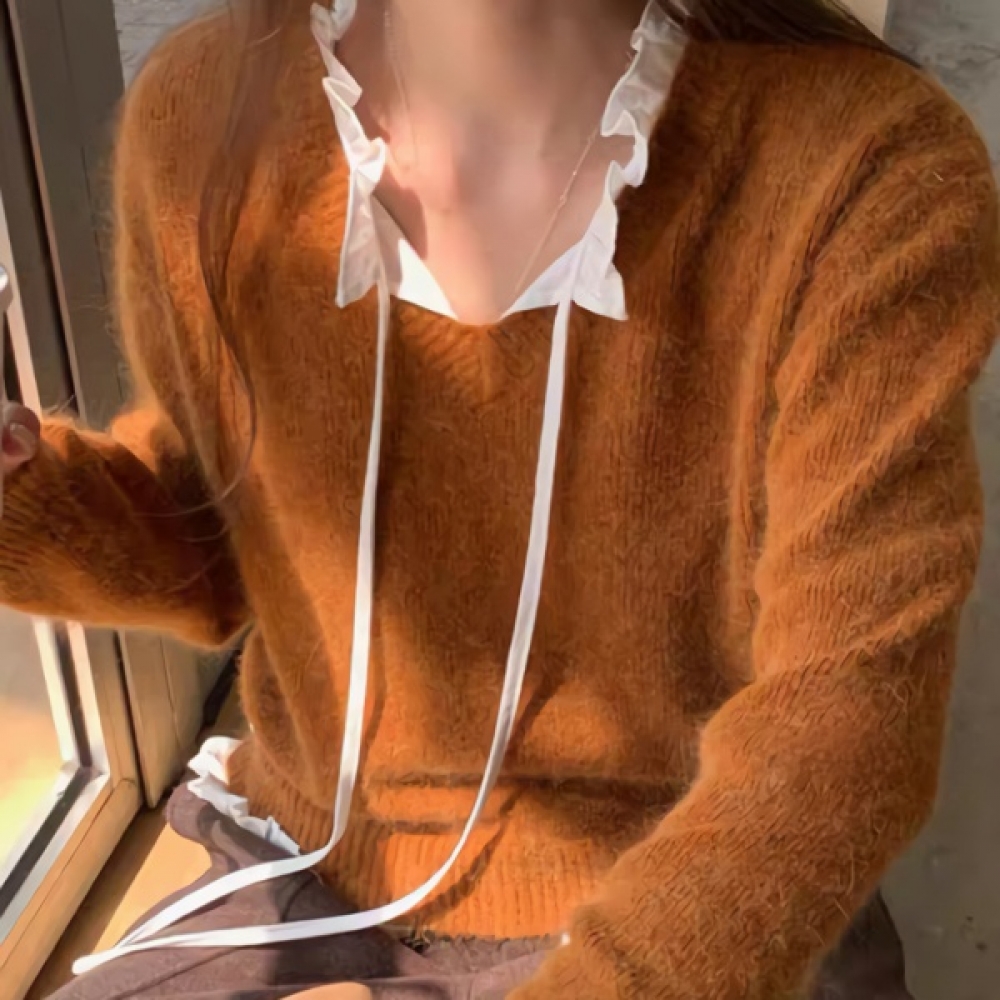 여성 겨울 데일리 앙고라 카라넥 버튼 니트