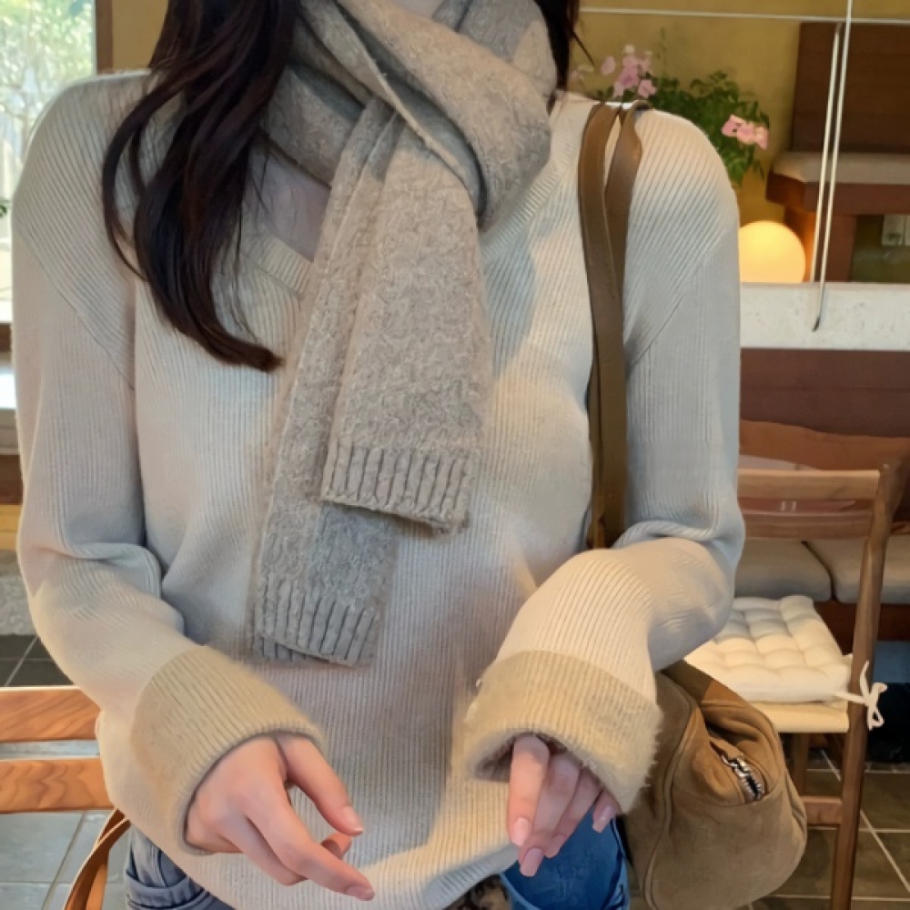 여성 베이직 헤어넥 삼각 니트 머플러