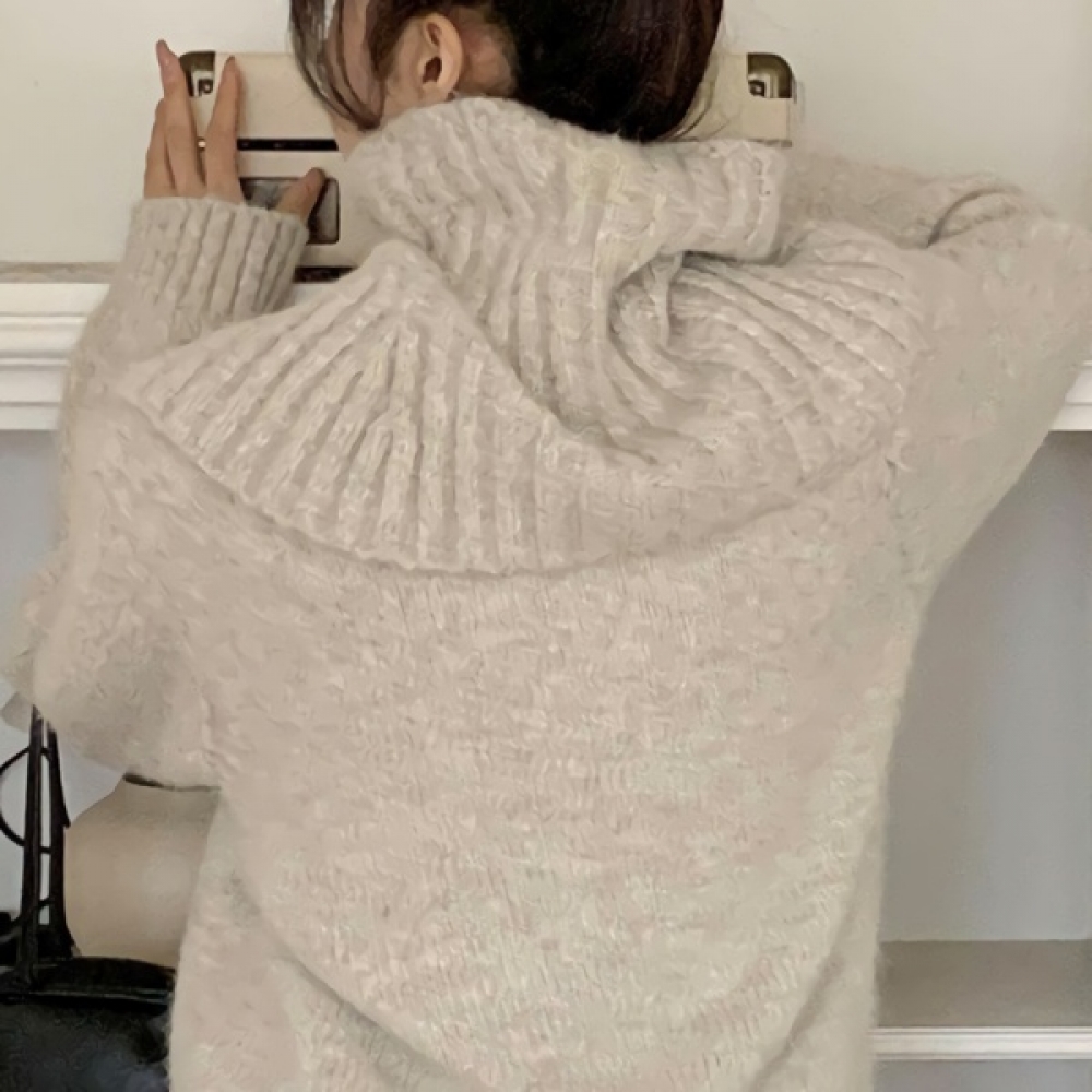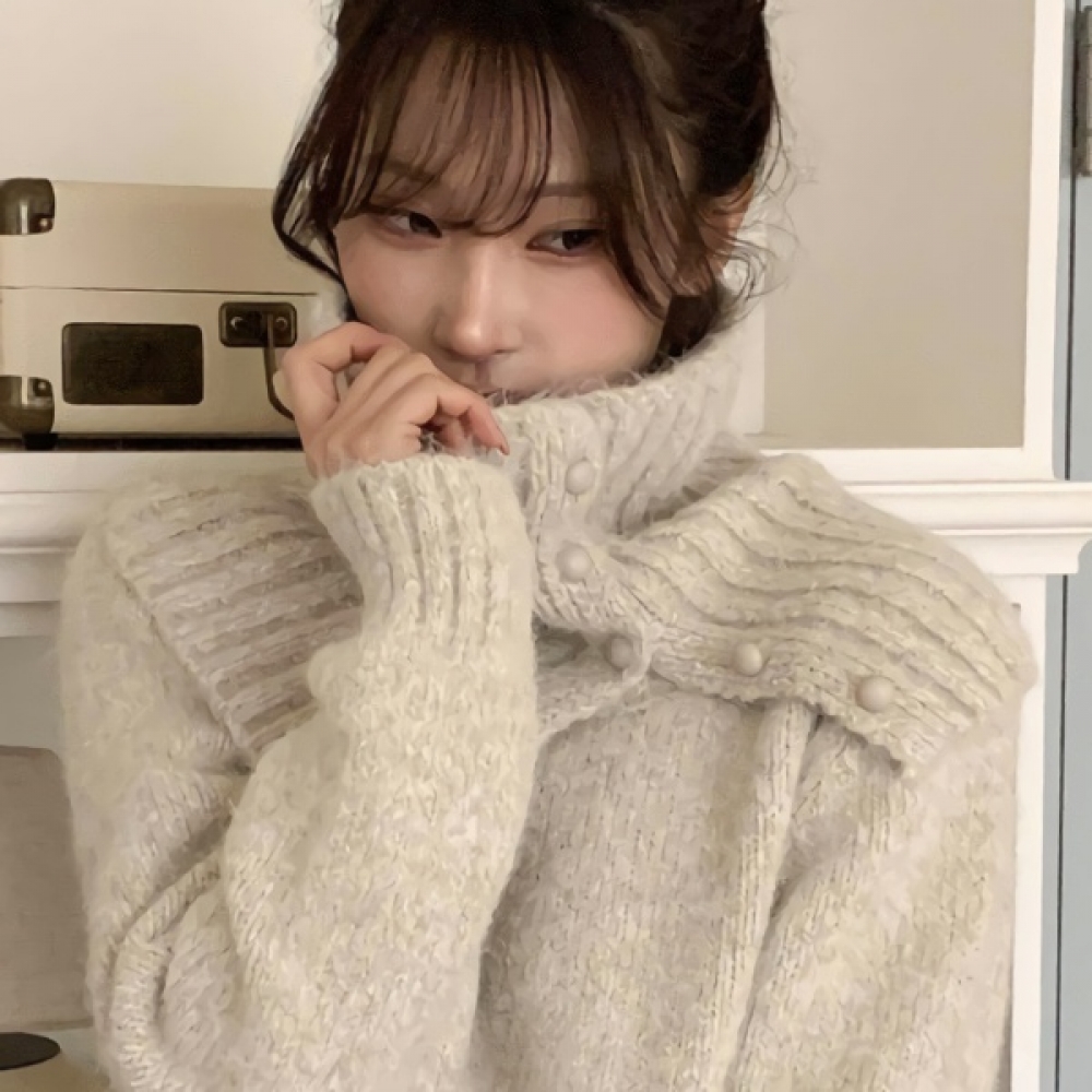 여성 겨울 데일리 앙고라 카라넥 버튼 니트