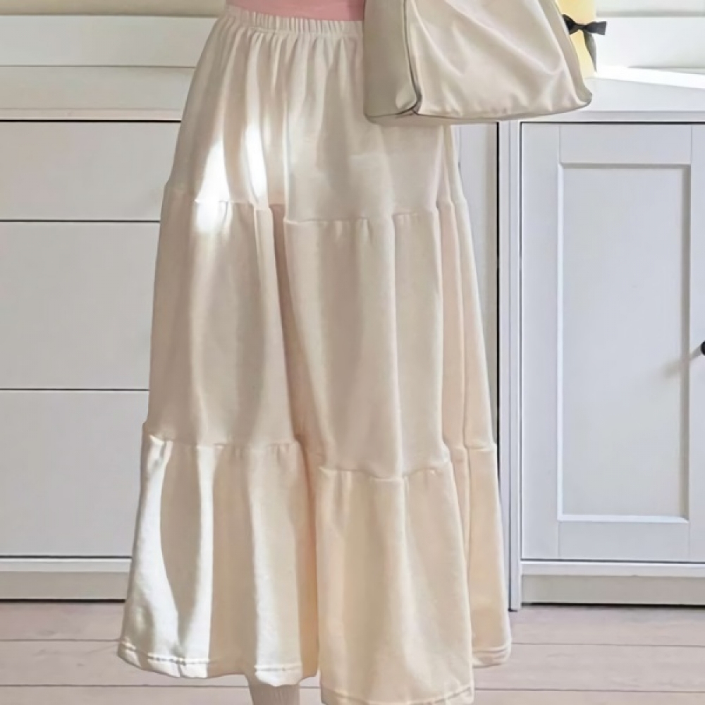여성 모직 이중 레이어드 A라인 벨트 롱 스커트