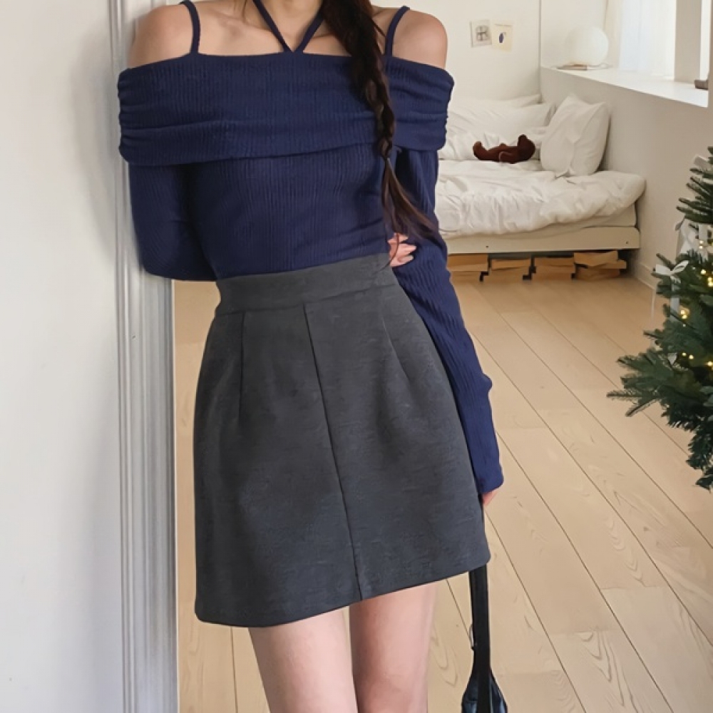 여성 겨울 A라인 깔끔 모직 미니스커트