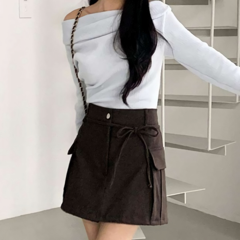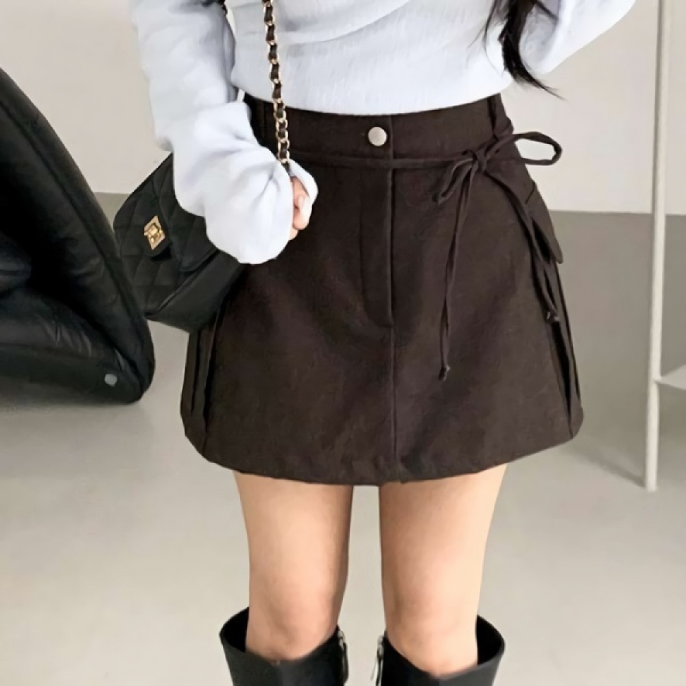 여성 A라인 리본 카고 미니 치마바지