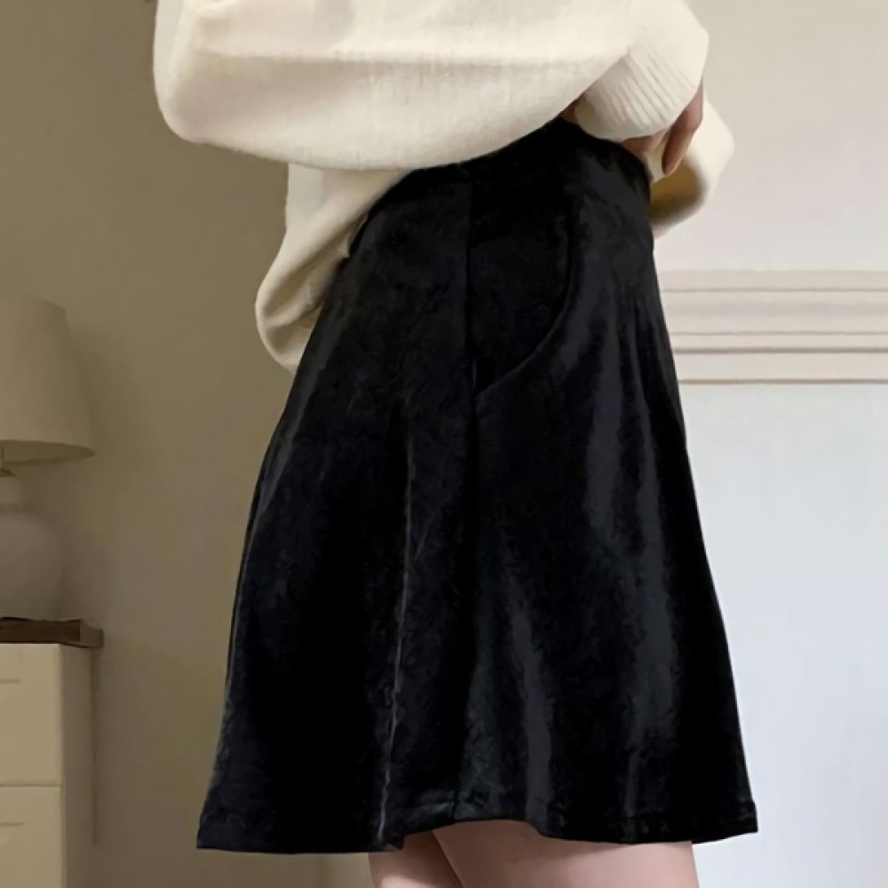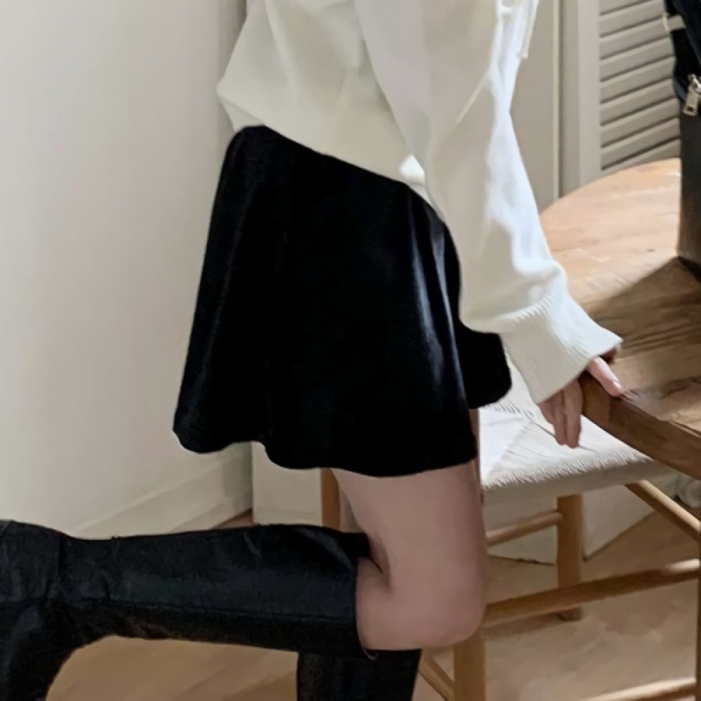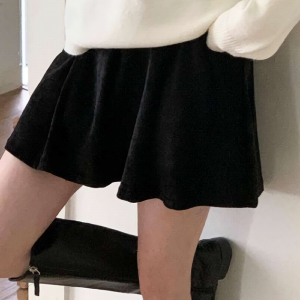 여성 겨울 벨벳 플레어 밴딩 미니스커트